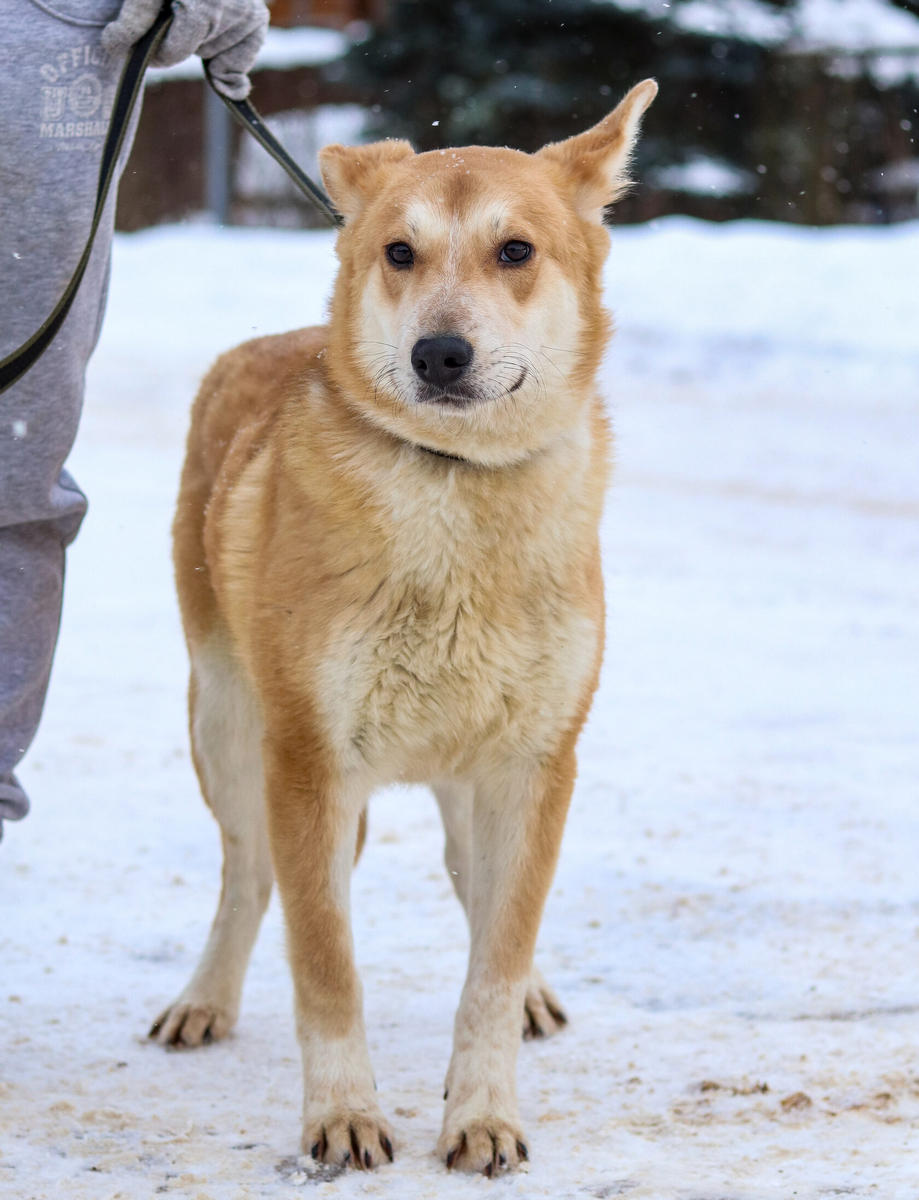 Matvey, kille. Våran gyllene pojke är förtjusande, tillgiven, lugn och känslig, skäller inte mycket. Han tycker om att vara nära och delta i allt du gör. Kan till en början vara blyg runt främmande människor och behöver lite tid, men efter det är han sitt vanliga själv, en tillgiven kelgris. Han kan också bli lite orolig i nya situationer, vilket kan bli en lång lista då han inte fått någon större exponering av olika saker. Matvey saknar självförtroende ibland, vilket vi tror beror på att han inte socialiserades tillräcklig som valp. Han morrar inte ens när han är stressad. Han kan inte försvara sig mot andra dominanta hundar, är totalt försvarslös, vilket gör att han ibland blir mobbad.